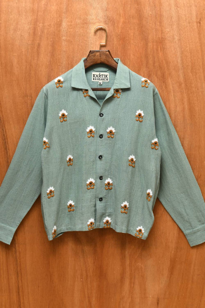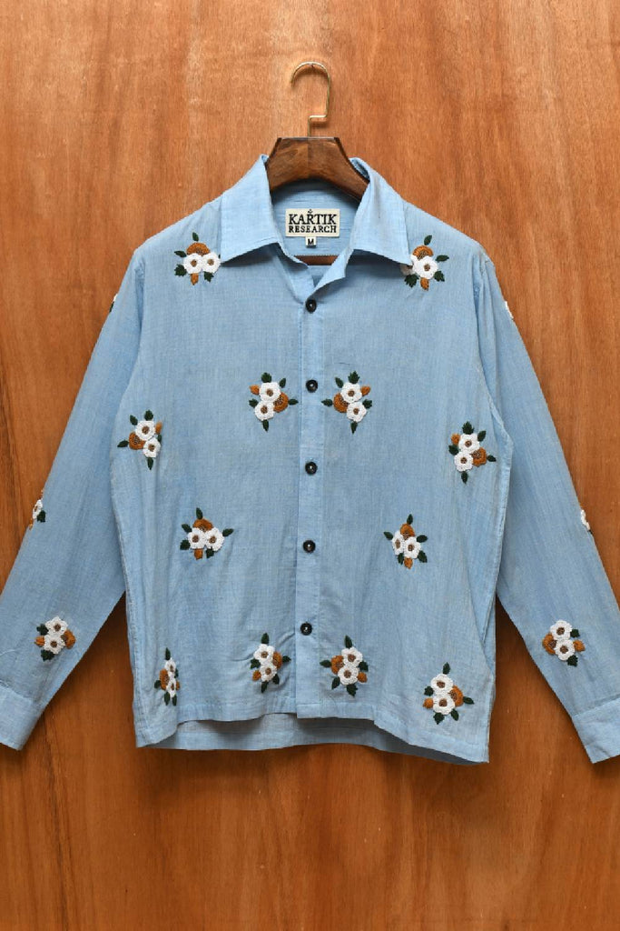 Second Layer Flora Shirt Jacket Light Blue/Ivory